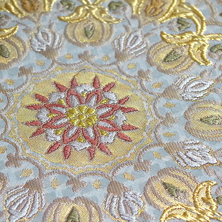 本場筑前博多織 八寸帯【令祥錦 青の花】