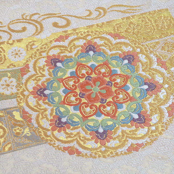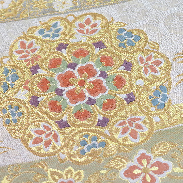 • 素材 【地糸】・絹100%、【柄糸】・絹55%、ポリエステル(金属糸風)45%