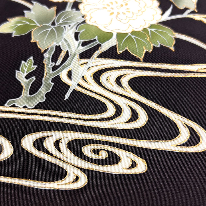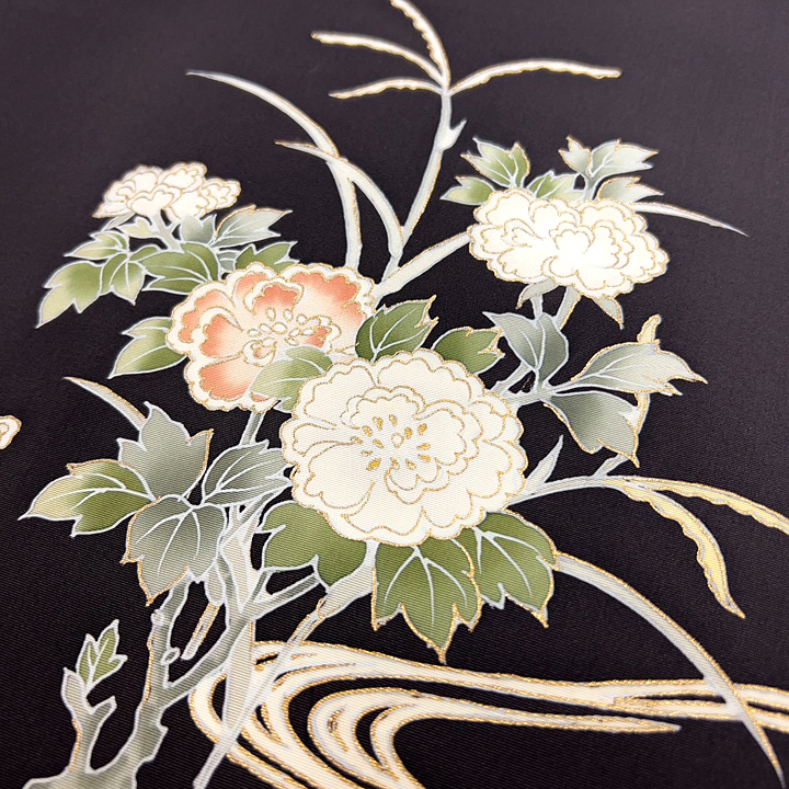 黒留袖は既婚女性の正礼装となりますので、紋は染めの五つ紋を入れます。
