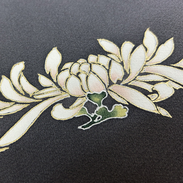 黒留袖は既婚女性の正礼装となりますので、紋は染めの五つ紋を入れます。