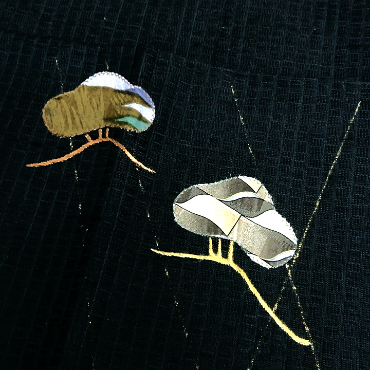 三つ紋(縫い)とは、縫い紋です。抜き紋よりも格式が下がり、お洒落紋となります。裏地を付けるお仕立てです。大体10月~5月(地域によって異なります)に着るお着物のお仕立てです。