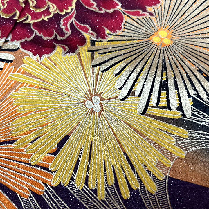 黒留袖は既婚女性の正礼装となりますので、紋は染めの五つ紋を入れます。