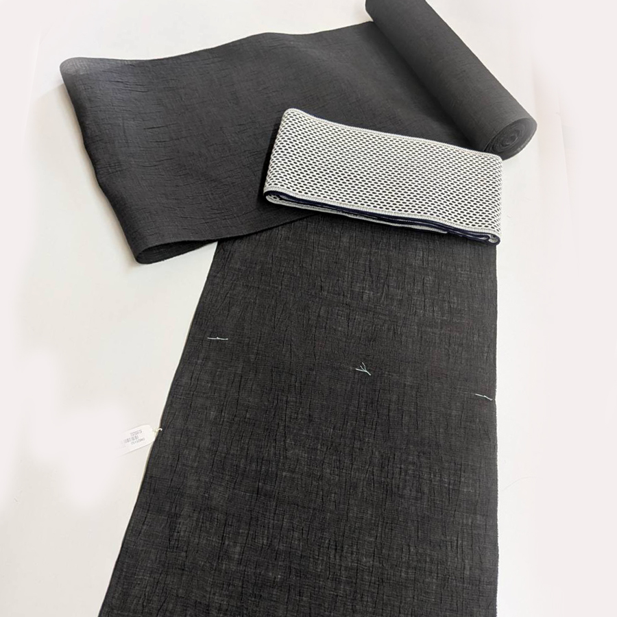 越後小千谷本麻織物  本麻九寸名古屋帯【縞 黒格子】
