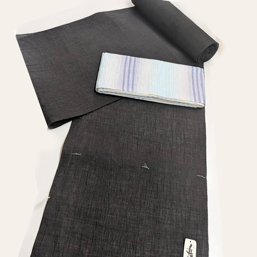 越後小千谷本麻織物  本麻九寸名古屋帯【縞 黒格子】