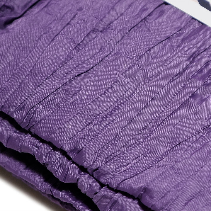 シワ感のある軽やかな素材は、ボリューム感のある結びがしやすく、後ろ姿も華やかに演出。