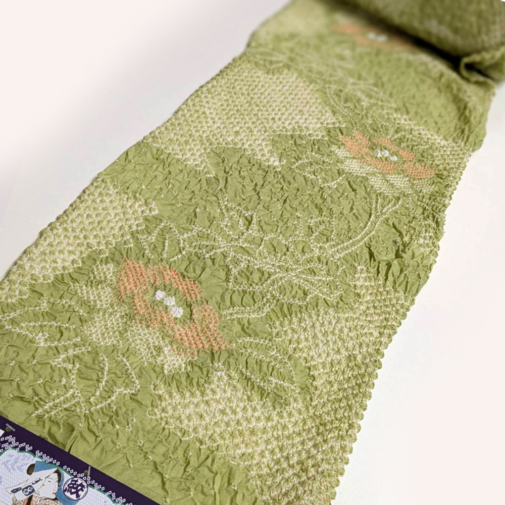 越後小千谷本麻織物  本麻九寸名古屋帯【新緑】