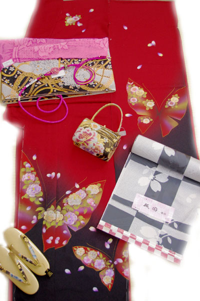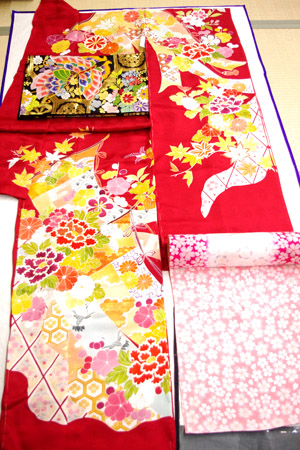 ![]() 特選本染めちりめん振袖 特選西陣織袋帯 |