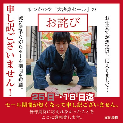 そのため、誠に勝手ながらセール期間を短くさせて頂きます。