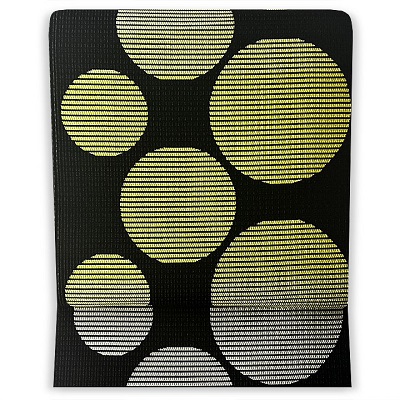黒地に白と黄色の水玉模様がデザインされたお洒落感のある柄ゆきになります。