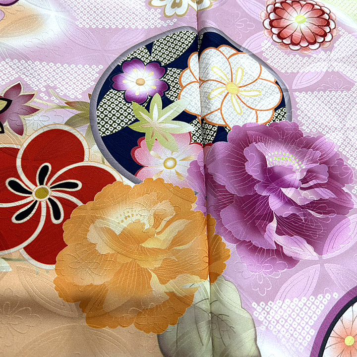 • カラー・模様 ピンク色,橙,赤,黄色,紫etc・牡丹,菊,鎌倉文風etc