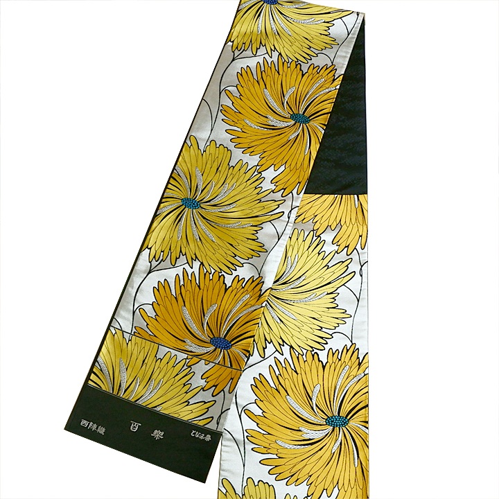 川勝染匠謹製 塩瀬九寸名古屋帯【牡丹に菊】