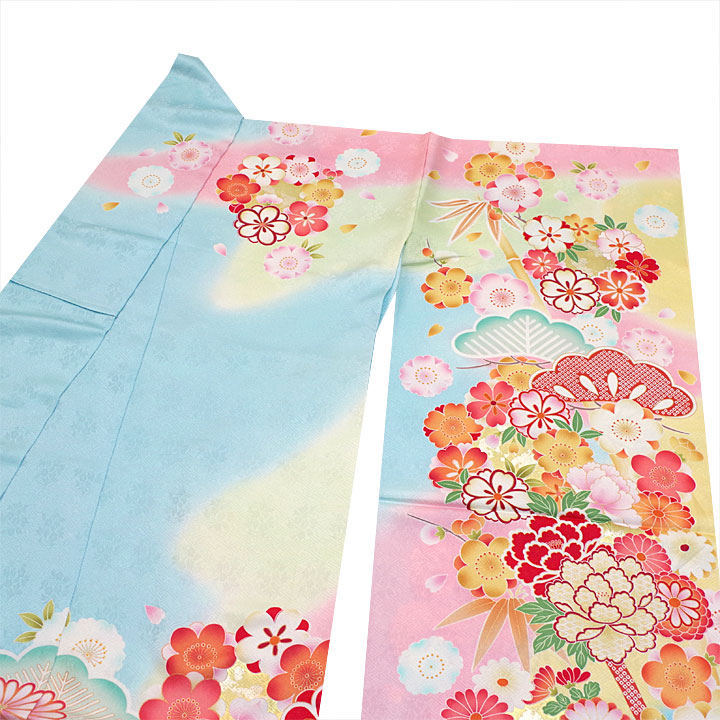 • カラー・模様 水色、ピンク色、緑色、橙色、赤色、茶色など・檜扇、松、菊、牡丹、桜などの花々