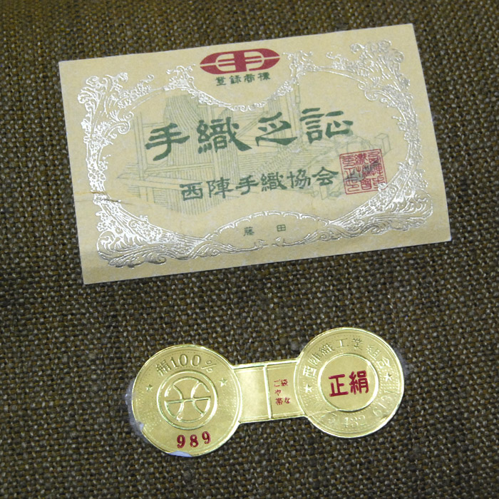 三河地区にて製織、加工仕上げされた「三河帯芯之証付」でございます。