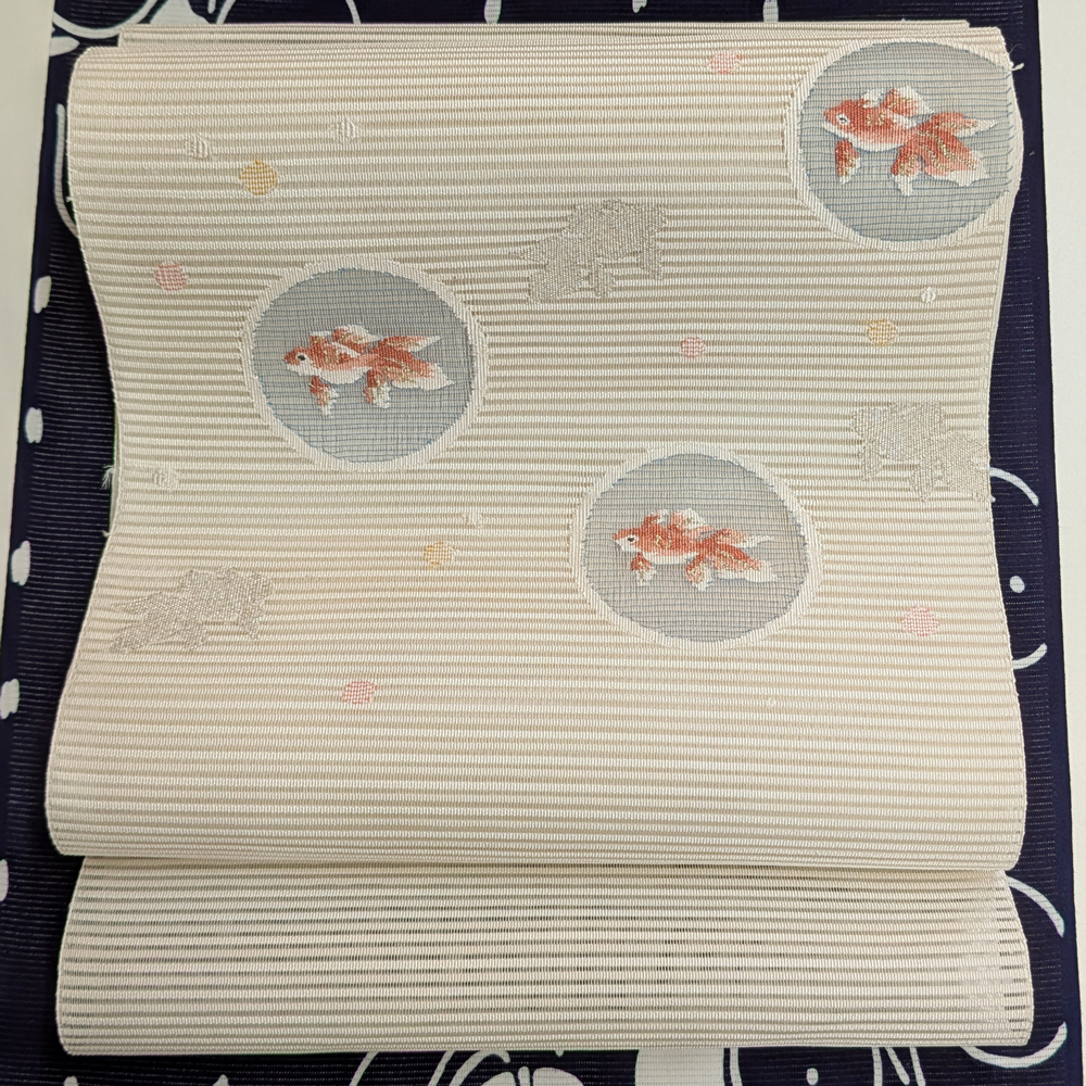 鹿子井山田 西陣織九寸名古屋帯【波と壁画サカナ】
